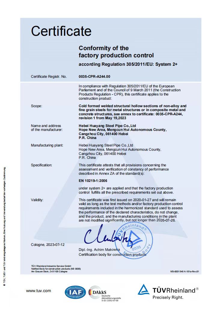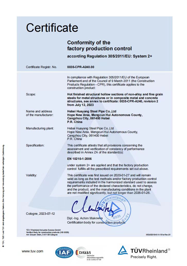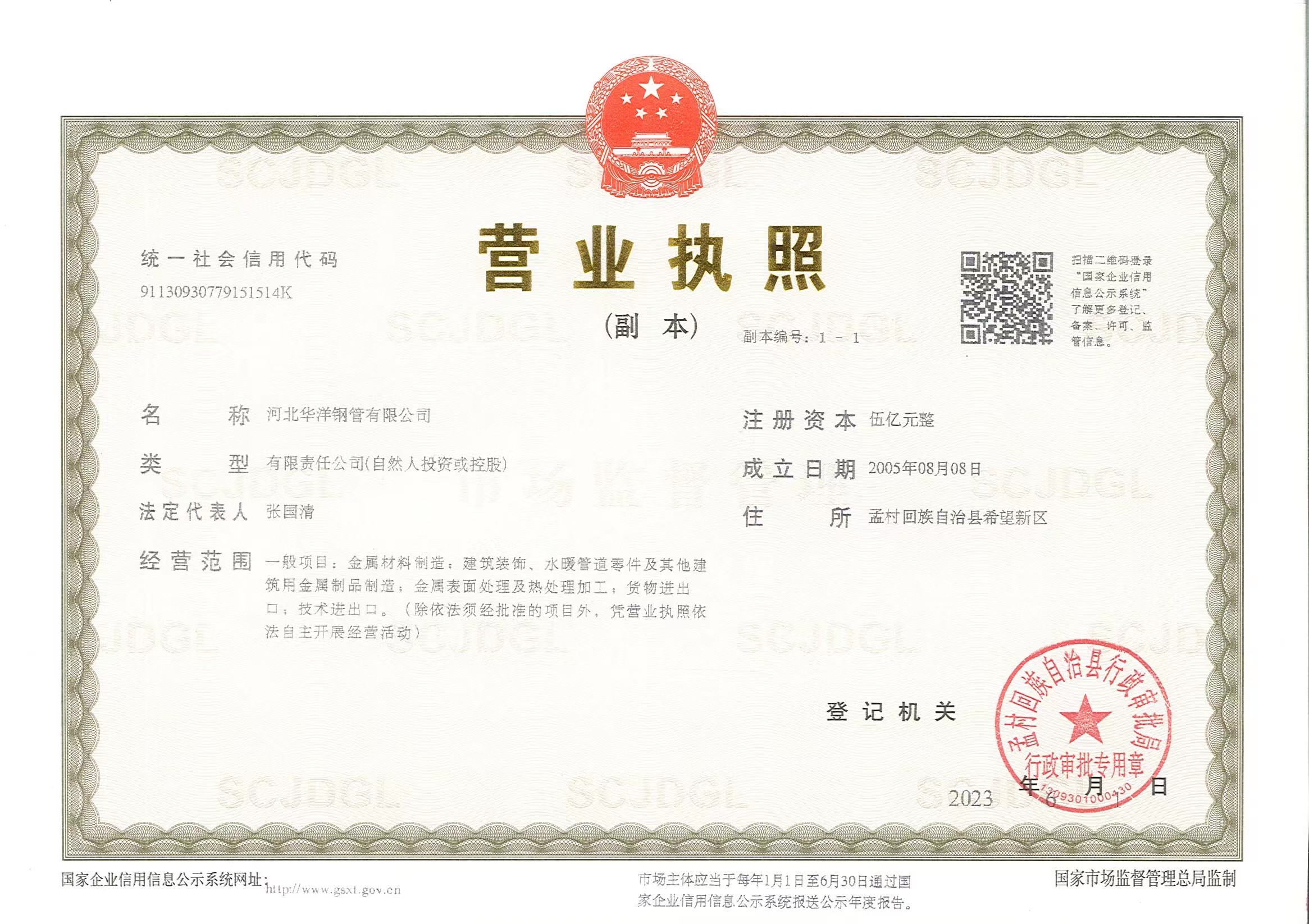 河北華洋鋼管有限公司公司創(chuàng)建于2005年,注冊(cè)資金5億元,公司占地面積1000余畝,固定資產(chǎn)12億元,年銷(xiāo)售收入近100億元,現(xiàn)有員工600余人?!叭A洋牌"高頻直焊鋼管被評(píng)為“河北省名牌產(chǎn)品”,年生產(chǎn)能力可達(dá)260萬(wàn)噸,2024年河北華洋鋼管有限公司榮獲河北省百?gòu)?qiáng)民營(yíng)企業(yè)(69位),河北省百?gòu)?qiáng)制造業(yè)(57位)榮譽(yù)稱(chēng)號(hào)。